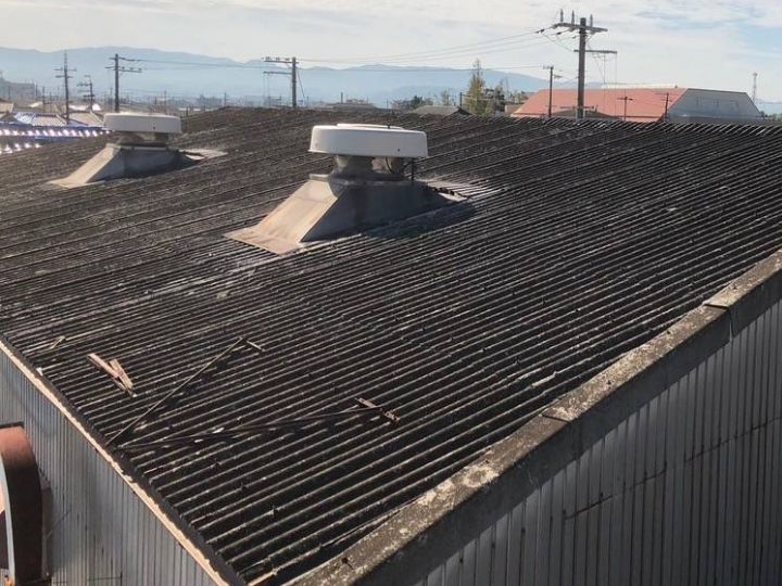 工場・倉庫の屋根材として多くで使用されている、折板屋根(金属屋根)・波形スレート屋根での最も多い原因は屋根のボルト部分の錆です。屋根を固定するボルトが錆て劣化することで徐々に緩むことにより、屋根材の継ぎ目部分隙間が生じ、そこから雨が漏れてしまうケースです。