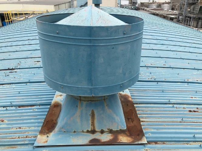 屋根上に排気を行うための換気口などを設置している工場・倉庫の場合は、換気口周りのシーリング(コーキング)の劣化による硬化が原因で、ひび割れや剥がれが生じ、雨水の浸入を防止する役割が果たさなくなります。