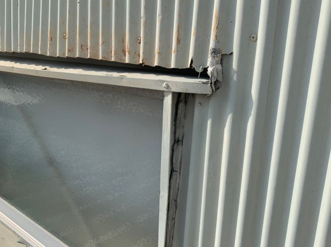 特に古くに建てられた工場や倉庫にはトタン外壁(亜鉛鉄板)が使用されていることが多く、その劣化が原因となって雨漏りする場合があります。防水のために施されたシーリングがひび割れ、そこから雨水が建物内へ侵入したり、外壁自体がひび割れている場合なども考えられます。